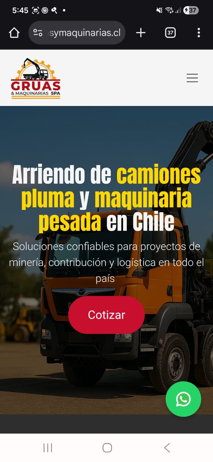 Sitio corporativo orientado a la captación de servicios de arriendo de grúas y maquinaria pesada, mejorando visibilidad digital y contacto comercial.