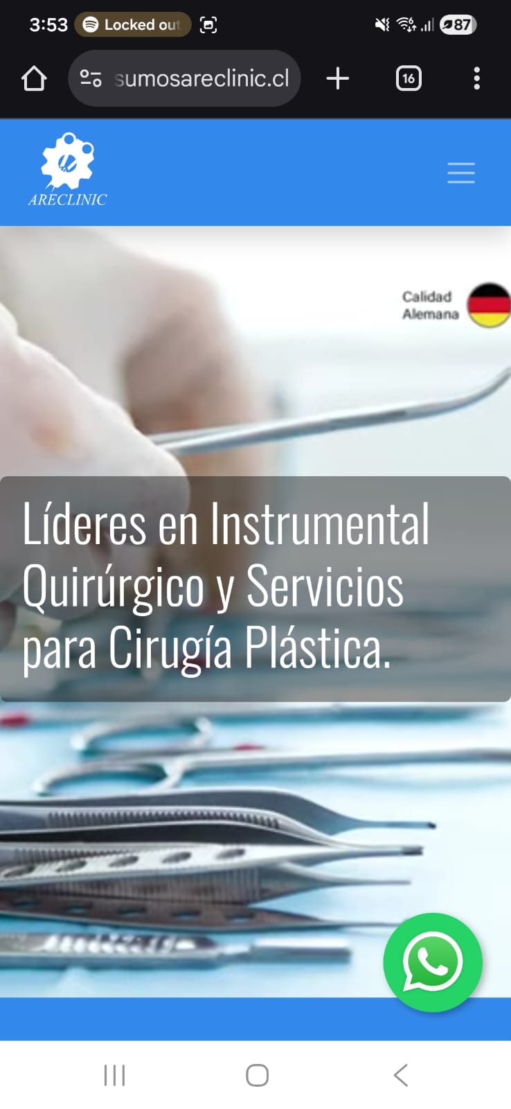 Portal corporativo que posiciona a Insumos Areclinic como proveedor de instrumental quirúrgico y servicios técnicos para el sector salud con catálogo especializado y contacto comercial directo.